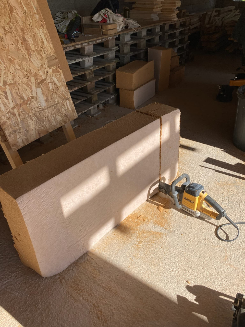 On profite des beaux jours du printemps pour terminer une étape importante pour notre toit. On doit le remplir avec de l'isolant thermique. Le toit est l’élément le plus important pour avoir une maison chaude en hiver et fraîche en été donc on n'a pas lésiné même si c'est un budget conséquent. On a opté pour de la fibre de bois un matériau avec des qualités intéressantes et qui est plutôt agréable à couper et à manipuler.