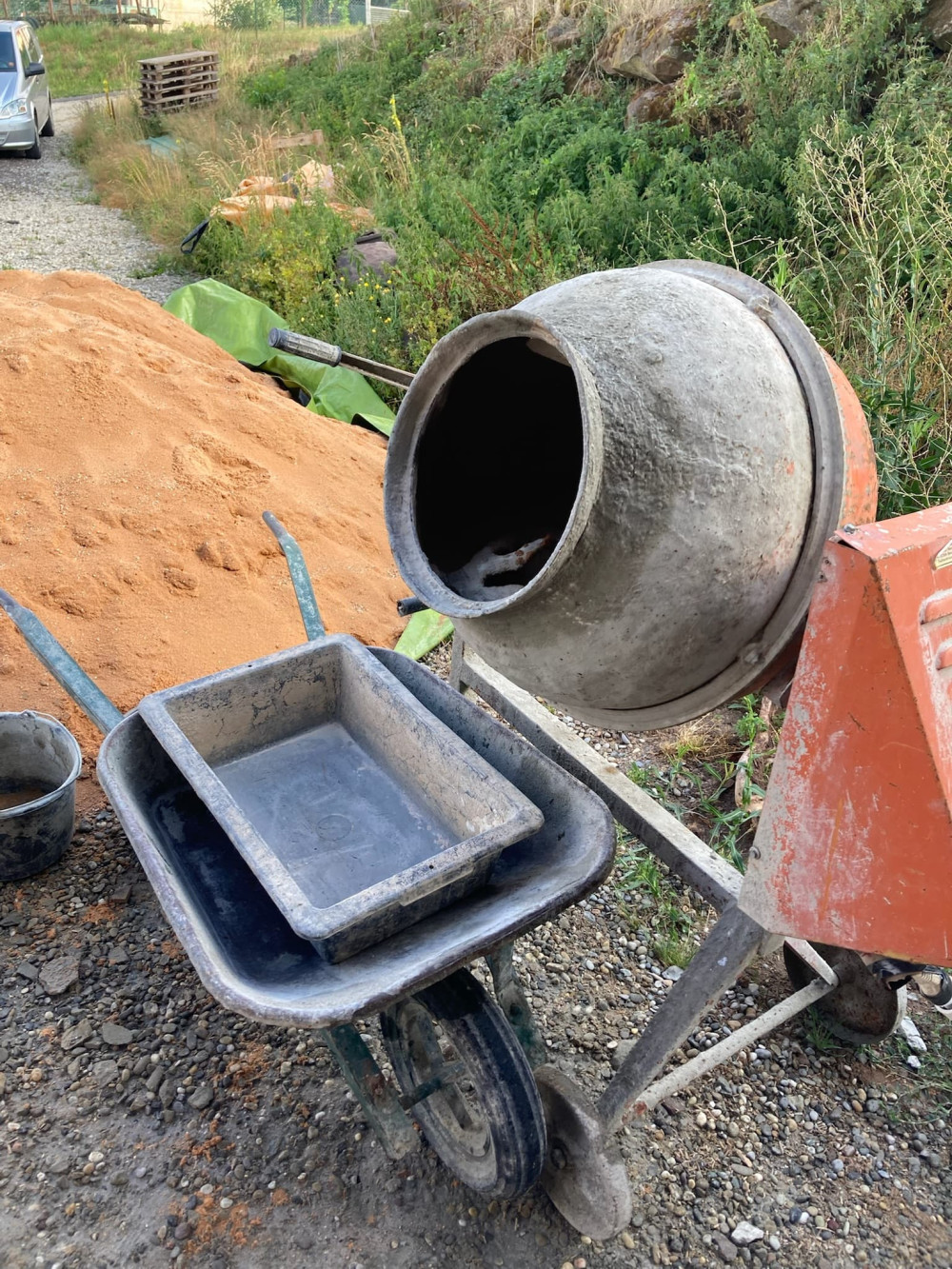 La mise en œuvre demande pas mal de connaissances et on fait appel à Philippe pour nous aiguiller et nous montrer les rudiments de ce métier. Il y a beaucoup de paramètres à gérer donc on lui fait 100% confiance. Il est par exemple très important de bien choisir le sable en fonction de sa granulométrie, de sa charge (limon, argile, etc), de la forme de ses grains (roulé par une rivière) et de sa couleur. On s'est orienté vers un sable de carrière d'une très belle couleur orangée.